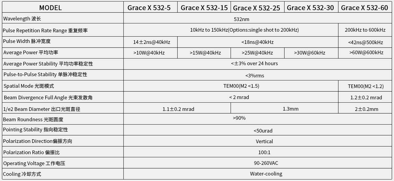 Grace X532系列綠光激光器適用于太陽(yáng)能硅片刻槽切割、金屬破陽(yáng)、薄膜蝕刻、打標(biāo)、切割、劃線等應(yīng)用領(lǐng)域。