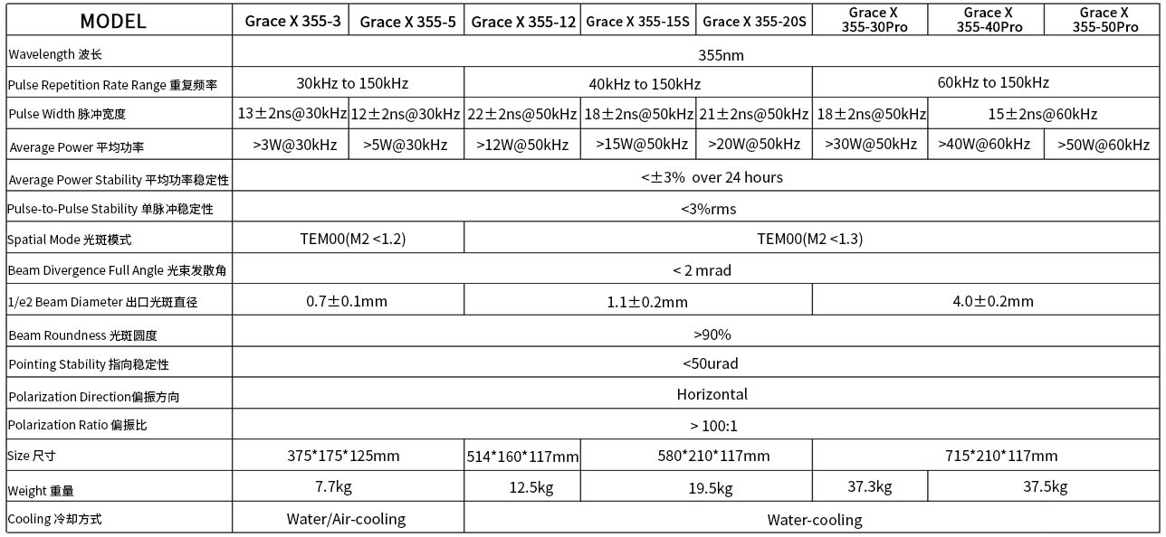 Grace X 355-3/5W紫外激光器適用于3D打印、大氣檢測(cè)、生物醫(yī)療、PCB、玻璃、塑料等材料打標(biāo)。