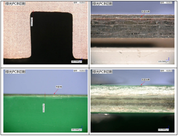 激光在PCB上的應(yīng)用主要包括切割、鉆孔、打標(biāo)等,尤以切割為主,而不同的激光類型也有不同的適用特點(diǎn)。以目前PCB加工中常用的3種激光為例,1064nm波段的紅外光纖激光易實(shí)現(xiàn)功率提高,但加工熱影響較大,適用于鋁、銅、陶瓷等材質(zhì)的基板切割;355nm波段紫外激光是通過(guò)高單光子能量破壞材料分子鍵來(lái)進(jìn)行加工,產(chǎn)生的熱影響非常小,可實(shí)現(xiàn)高精度加工,在FPC軟板、IC芯片及部分超薄金屬切割上有著良好應(yīng)用;而532nm波段的綠光激光熱影響介于紅外和紫外之間,同樣可用于超薄金屬及非金屬基板的加工,尤其在PCB硬板切割上有著明顯優(yōu)勢(shì)。