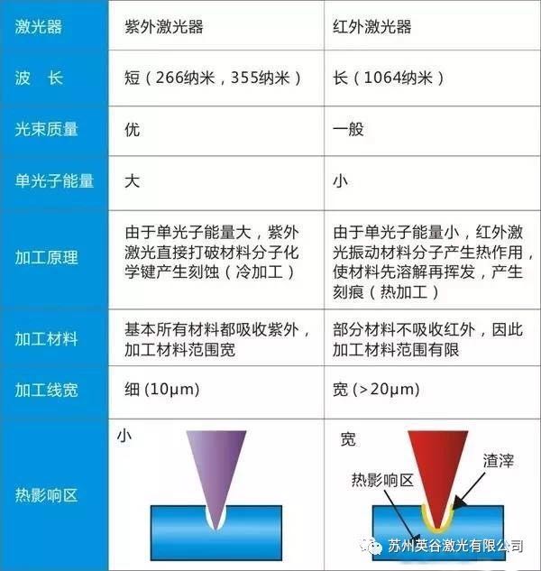 高能量的紫外光子直接破壞許多非金屬材料表面的分子鍵,使分子脫離物體,這種方式不會(huì)產(chǎn)生高的熱量,故被稱為冷加工,主要采用紫外激光(波長為355nm)。
