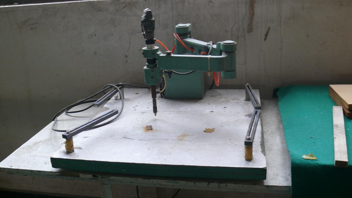 現(xiàn)有的用于切割平板玻璃的切割機(jī),一般是將待割玻璃板固定在工作臺(tái)上,氣動(dòng)系統(tǒng)驅(qū)動(dòng)切割頭傳動(dòng)系統(tǒng),帶動(dòng)切割頭系統(tǒng)上下行走,切割頭傳動(dòng)系統(tǒng)帶動(dòng)切割頭在玻璃平面按照既定軌...
